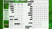 1.3 update brings the punk sheet in line with the 1.3 rules. The major change is combining the "uses" of skills, gear, cyberware, resources, and scene into "assets", using a uniform way of handling th...
